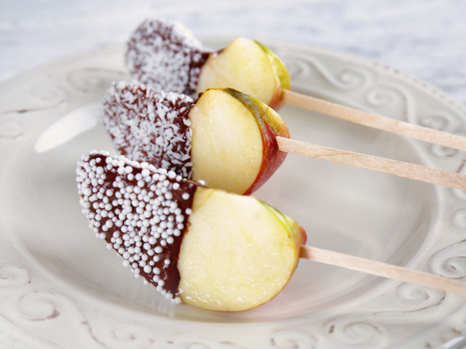 Recipe: Slice apples into wedges and dip them into melted caramel sauce. Place them on a baking sheet lined with parchment paper to let the caramel set. Top each slice with a small piece of cheddar cheese. For the cider, heat apple cider on the stove with cinnamon sticks, cloves, and a few slices of fresh orange. Simmer for 10 minutes and serve warm.
