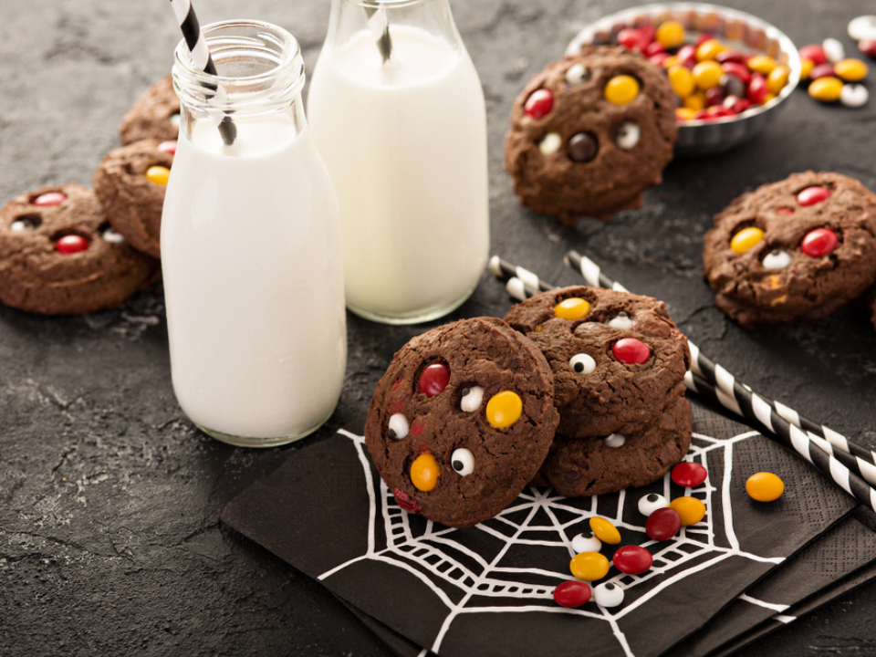 Recipe: Prepare chocolate cookie dough and bake according to package instructions. After baking, place candy or sugar eyeballs on top of each cookie. Serve with a cold glass of milk for the ultimate Halloween treat.