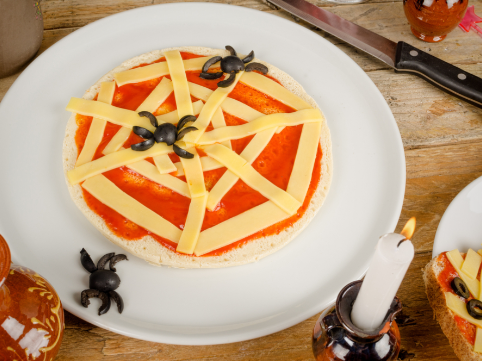 Spider web pizza is a Halloween-themed twist on a classic favorite. The pizza is topped with cheese in a spider web pattern, using mozzarella and a drizzle of black olive tapenade to create the web effect. The crust is crispy and golden, providing the perfect base for the rich tomato sauce. This pizza pairs perfectly with a refreshing pumpkin ale, offering hints of cinnamon and nutmeg to complement the savory flavors of the pizza.