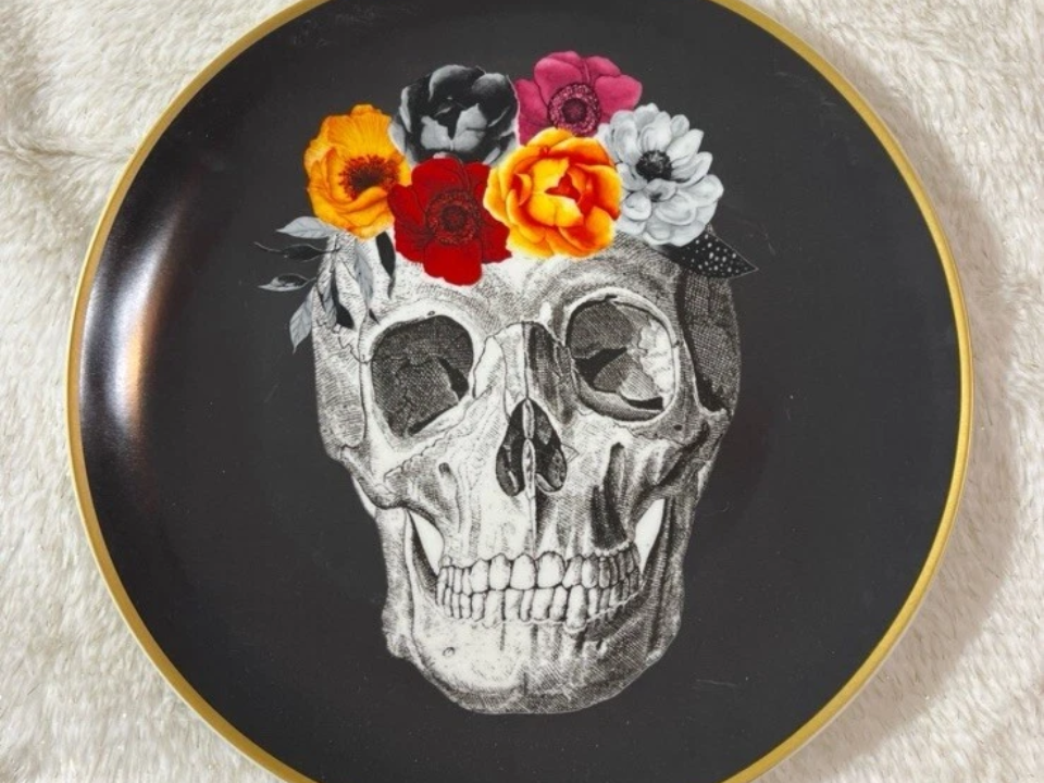 Hauntingly Beautiful Floral Skull Dishware Set
