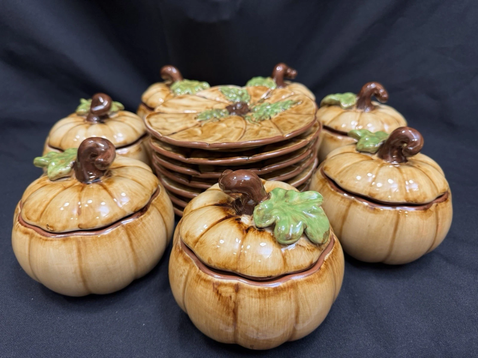Collectors appreciate the handmade nature of this set and the attention to detail on each pumpkin face. You can expect to pay around $150 to $200 for this charming pumpkin head dishware set.