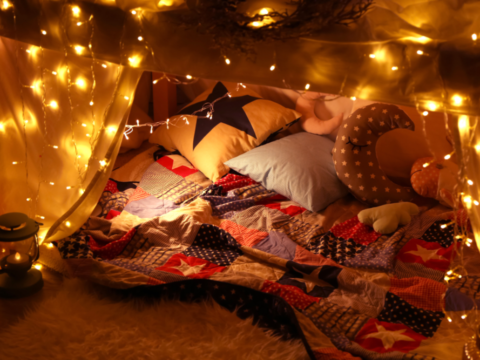 Transform part of your party area into cozy blanket forts to provide a warm and snug spot for guests to relax. Use soft blankets, pillows, and fairy lights to create a magical atmosphere perfect for unwinding after a busy day of activities. The blanket fort can serve as a quiet retreat or a gathering place where guests can enjoy hot cider and chat about their favorite fall memories.