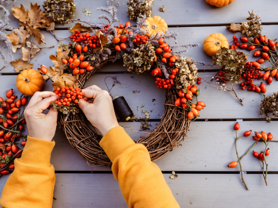 Wreath-making is an easy and creative activity that fits perfectly into a harvest-themed party. Provide guests with various crafting materials like fake fall leaves, twigs, ribbons, and floral wire. They can create their own autumn-inspired wreaths to hang on their doors or keep as a decoration. This hands-on activity gives everyone a chance to take home a personalized memento from the party.