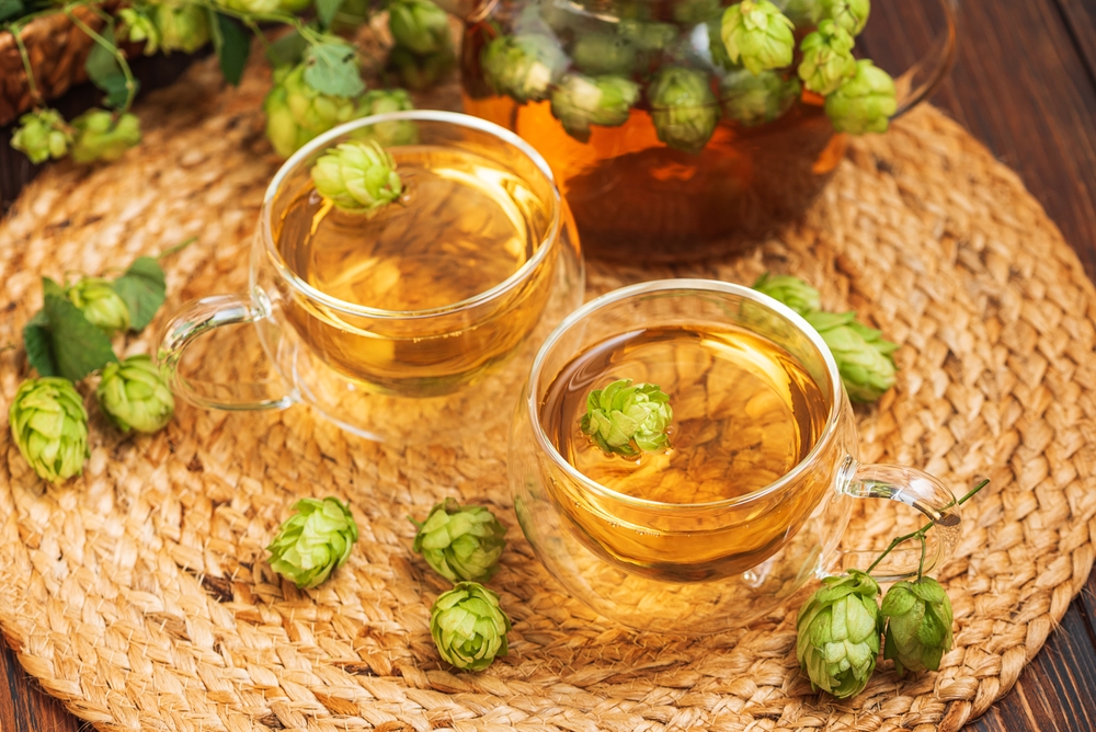 Hops tea, made from the flowers of the hop plant, is typically used for its sedative and relaxing effects. It is most commonly known for its use in brewing beer, but hops have a long history of use in herbal teas as a sleep aid. Hops tea has a unique, slightly bitter flavor that can be enjoyed on its own or combined with other calming herbs. The compounds in hops promote relaxation and help reduce anxiety.