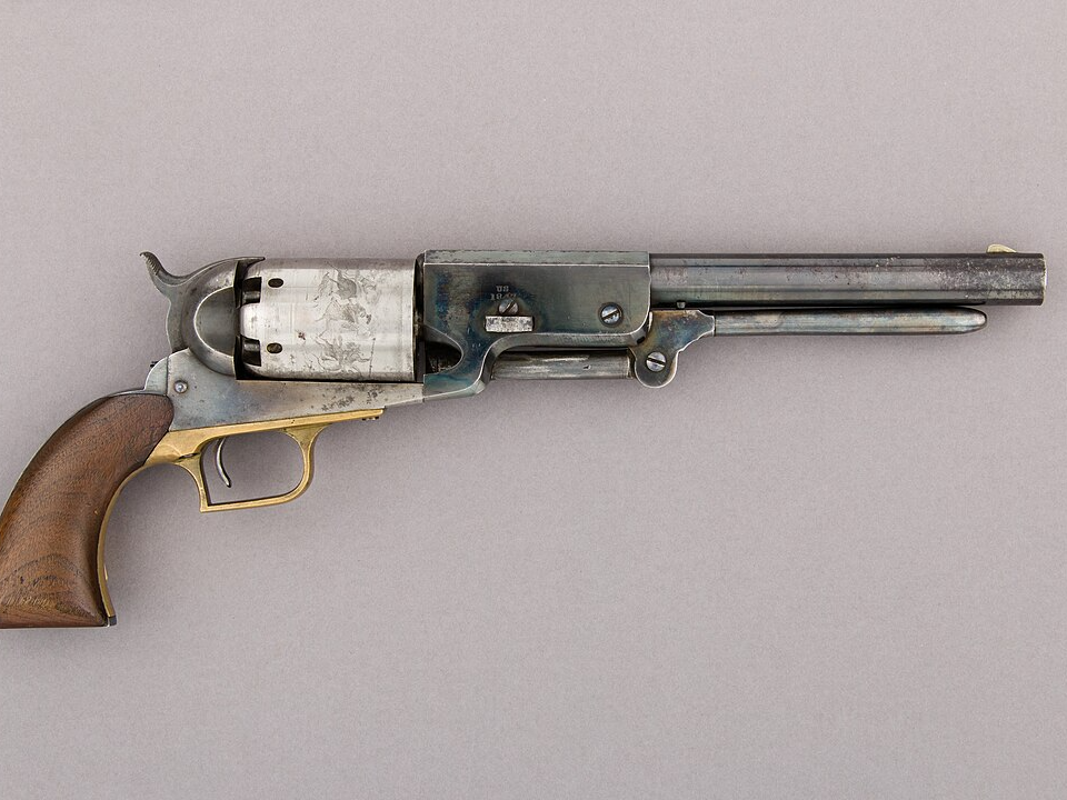 The Colt Walker was a massive revolver created for the Texas Rangers in 1847. Designed by Samuel Colt and Captain Samuel Hamilton Walker, it was chambered for a powerful .44 calibre round and featured a 9-inch barrel, making it one of the largest revolvers of its time. The revolver became a key part of American frontier history, used in early conflicts such as the Mexican-American War.