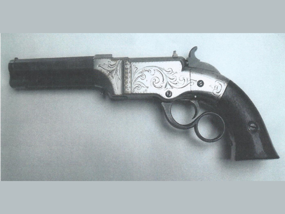 Produced in the 1850s, the Volcanic Repeating Arms Pistol was one of the earliest examples of a repeating firearm. Known for its lever-action mechanism and unique tubular magazine, the pistol was a precursor to later repeating firearms like the Winchester. It was chambered for .41 caliber and was relatively advanced for its time.