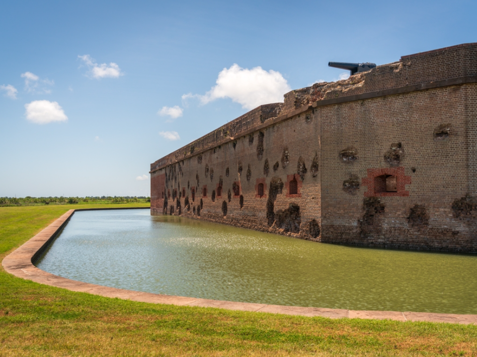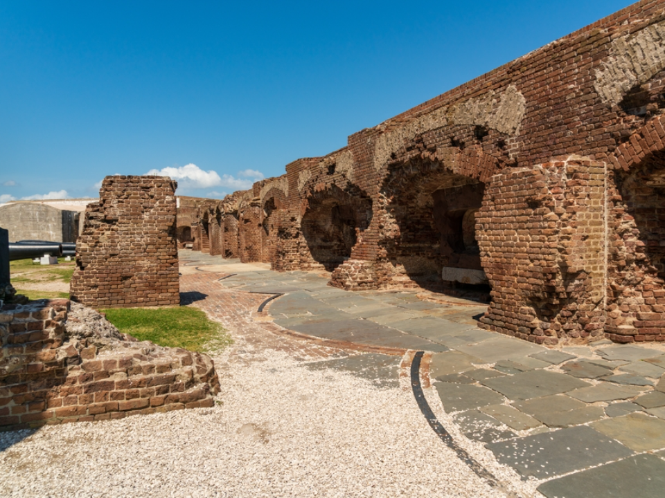 Fort Sumter creates excitement through its boat ride, which feels like part of the experience rather than a barrier. Once inside the fort, kids find a wide-open interior with clear walking areas. The stone surfaces feel solid and stable throughout the visit. Children can look closely at cannons without needing to climb or squeeze into tight spaces.