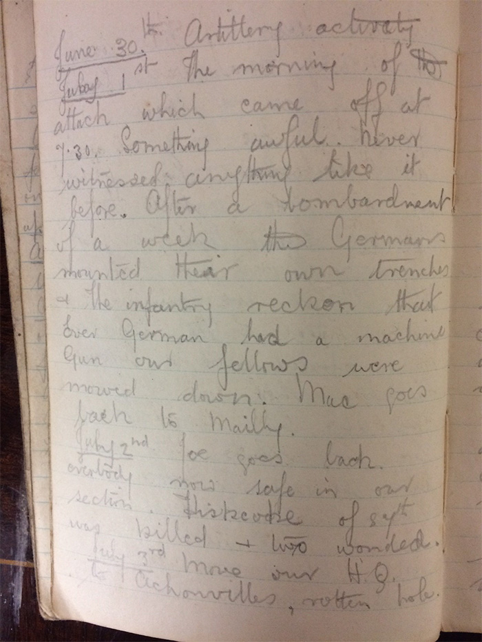 This personal diary covered the 1916 Somme fighting and was found in a Midlands barn. It sold at auction for two thousand six hundred pounds in 2020. The news report confirms sale and author while noting strong interest. Converting to dollars places the realized price roughly near three thousand to four thousand depending on exchange at the time. A present estimate would track that band for a comparable example.