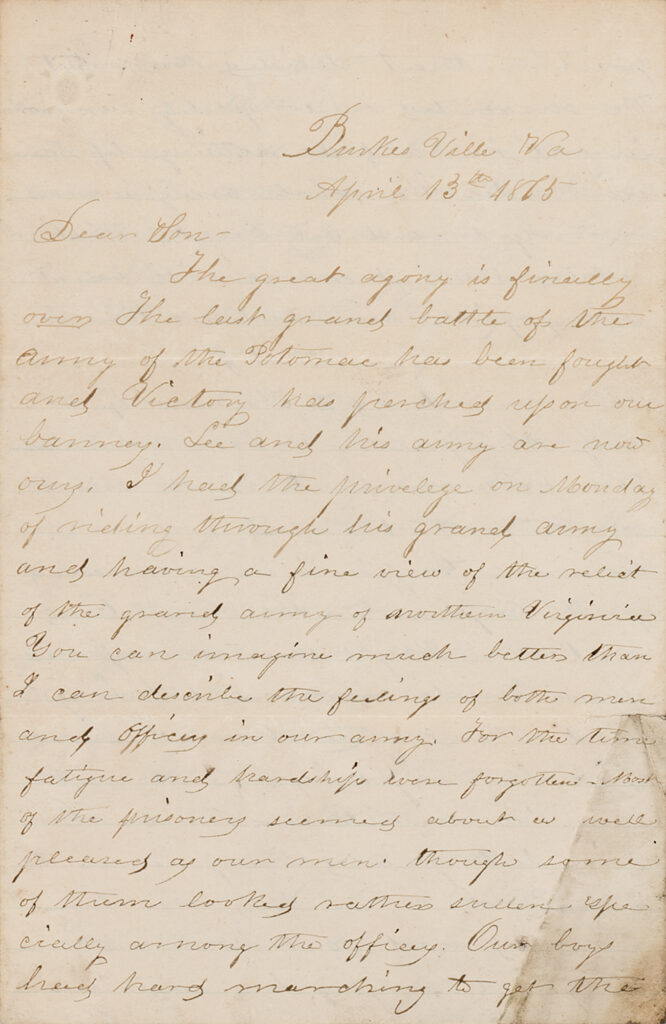 Union soldier letter describing Lee’s surrender by O. B. Clark