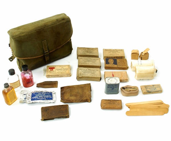 The British Army First Aid Pack, used during World War I, was designed to allow soldiers to treat minor wounds on the battlefield. It included basic supplies such as bandages, dressings, and antiseptic creams. This kit survived due to its widespread use and its ability to address the urgent medical needs of soldiers in the trenches. The current market value for this pack is around $80 to $150, depending on condition and rarity.