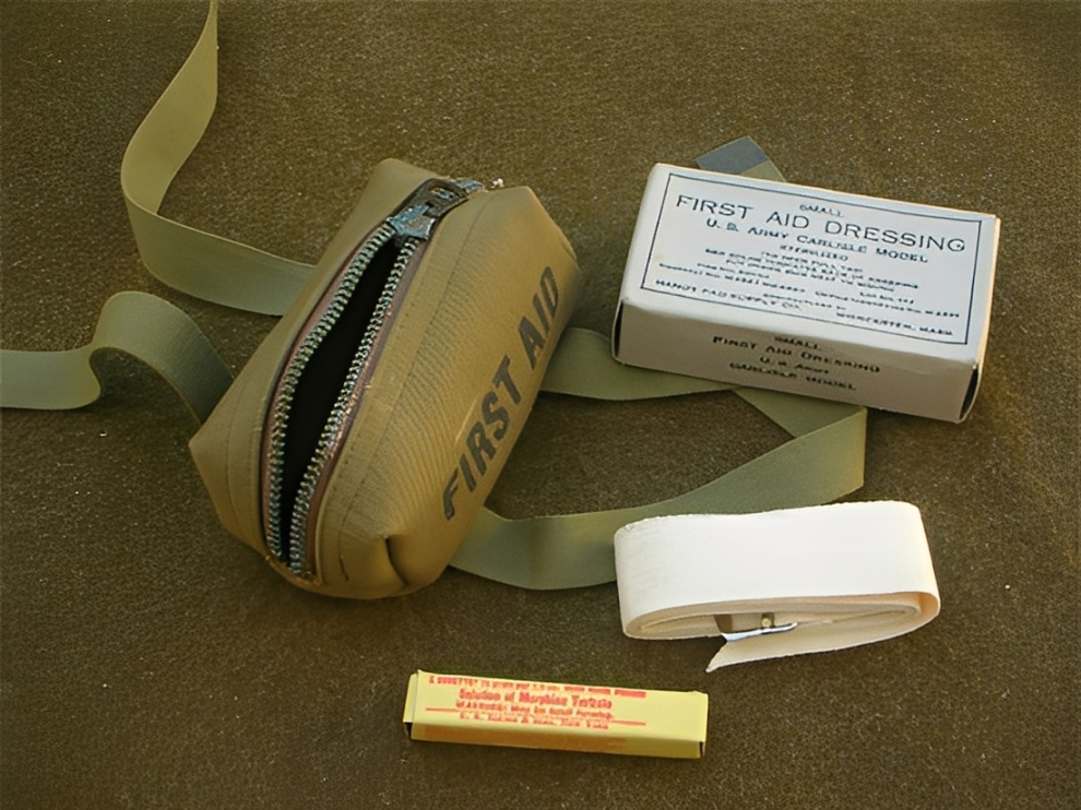 The U.S. M1 Medical Bag, used by the U.S. military during World War II, was a vital piece of gear for medics. It included a variety of items such as bandages, splints, and pain relievers. This kit survived due to its practicality and widespread use, providing essential care to soldiers on the front lines. The current market value for the M1 Medical Bag is about $250 to $400.