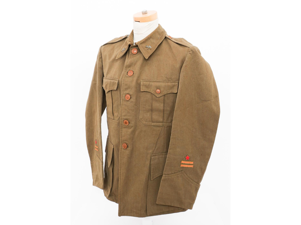 In a museum display, it is often presented with other historical military artefacts to help explain the aesthetic and functional choices behind this uniform. Such a uniform, given its historical significance and condition, is valued at approximately $3,000. This price reflects the rarity and preservation of the tunic, as uniforms from this era often show signs of damage or modification after World War I.