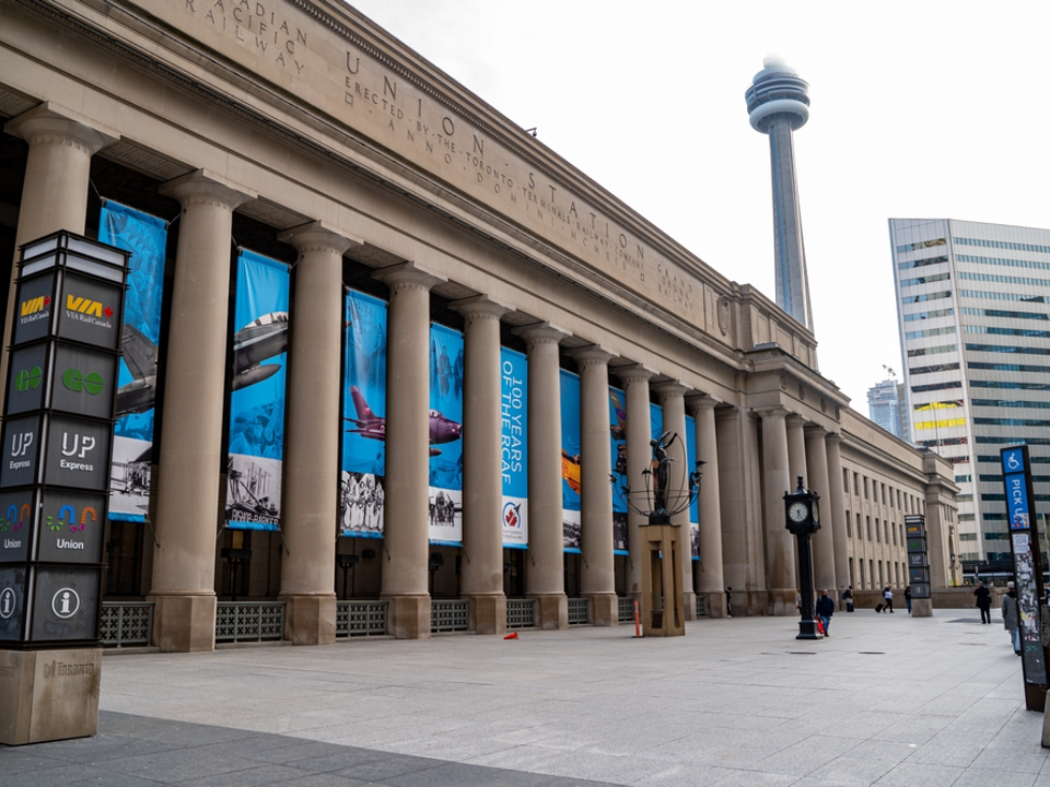 Toronto Union Station is an iconic building that combines historical grandeur with modern design. Completed in 1927, the station was designed in the Beaux-Arts style and is known for its monumental facade and large, imposing pillars. The station’s main concourse, with its high ceilings and ornate details, evokes the grandeur of a bygone era. Inside, the station boasts marble floors, decorative chandeliers, and intricate tilework, making it a visually stunning space.