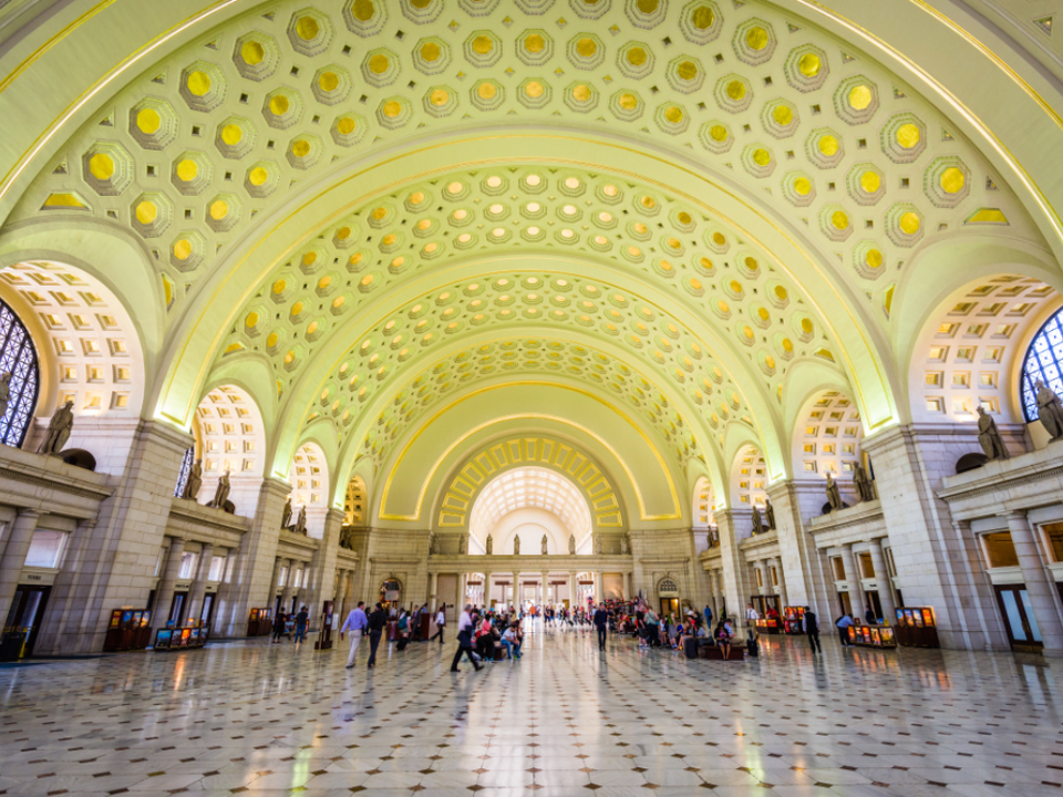Union Station in Washington, D.C., is a grand example of classical architecture and a symbol of American transportation. Opened in 1907, it was designed by the architectural firm of Daniel Burnham and features elements of Beaux-Arts style. The station’s massive front entrance, with its impressive Corinthian columns and grand arches, immediately grabs the attention of visitors.