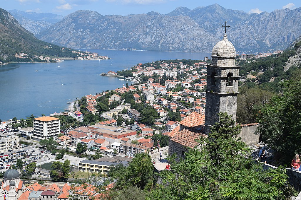 Kotor’s old town is encircled by stone walls that date back centuries. The winding streets lead to squares filled with Venetian-style buildings, which glow warmly under the soft autumn sun. Towering mountains rise behind the town, framing it in dramatic seasonal scenery.