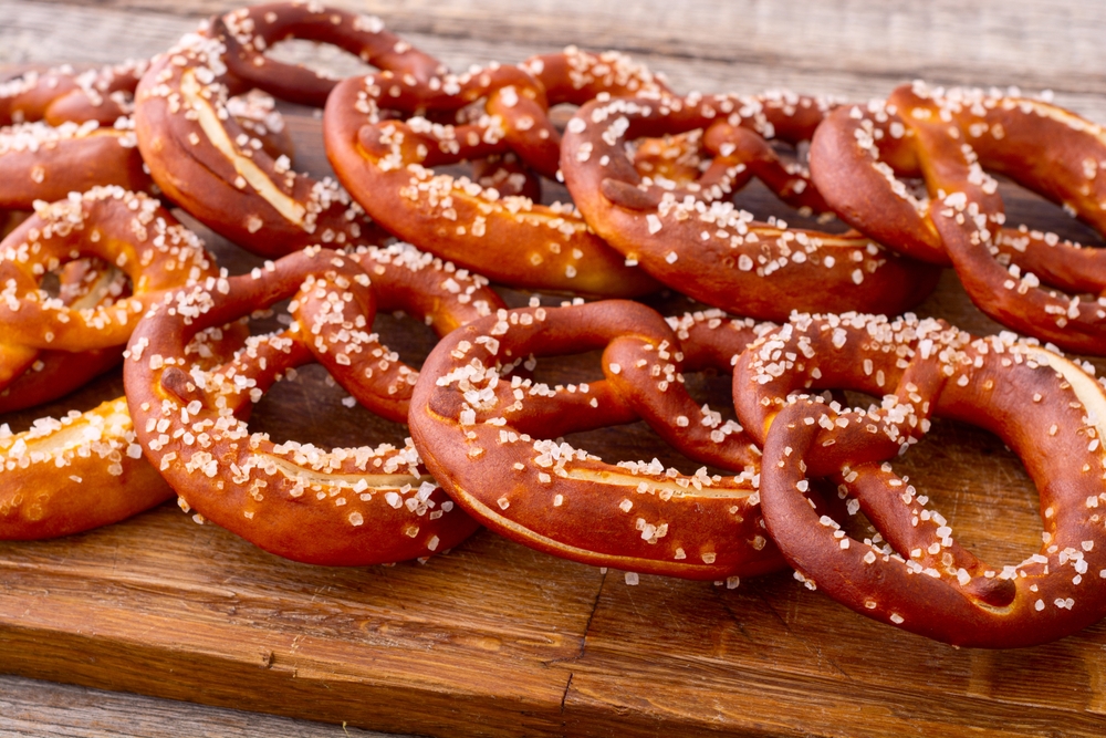 Soft Bavarian pretzels are another essential feature of Oktoberfest, symbolizing hospitality and good fortune. Their unique knot shape dates back centuries, originally given as rewards to children for learning prayers. These pretzels are traditionally served with mustard, cheese dip, or alongside beer, making them a favorite among festivalgoers.
