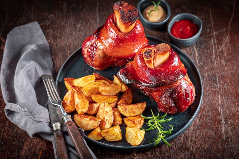 Schweinshaxe is one of the most iconic dishes served during Oktoberfest in Munich, where hearty meat dishes have long been a symbol of festivity and satisfaction. The pork knuckle, or “ham hock,” is slow-roasted until the skin turns golden and crisp while the meat stays juicy. It represents the Bavarian love for rich, comforting meals that bring families and friends together during the cool autumn season. Traditionally, it is served with potato dumplings, sauerkraut, and a generous mug of German beer, making it the centerpiece of many Oktoberfest tables.