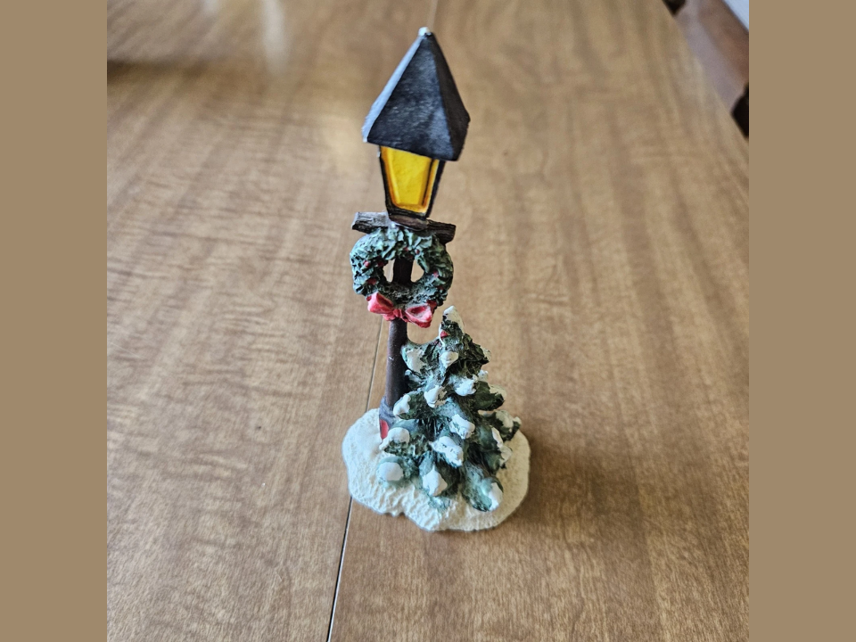 Height of the piece is about eleven inches which makes it visible from across the room while staying compact enough for a corner shelf. Many use it as a focal point beside a miniature tree or village houses. The warm glow and quiet winter feeling draw admiration from guests. Estimated value stands at about $29.