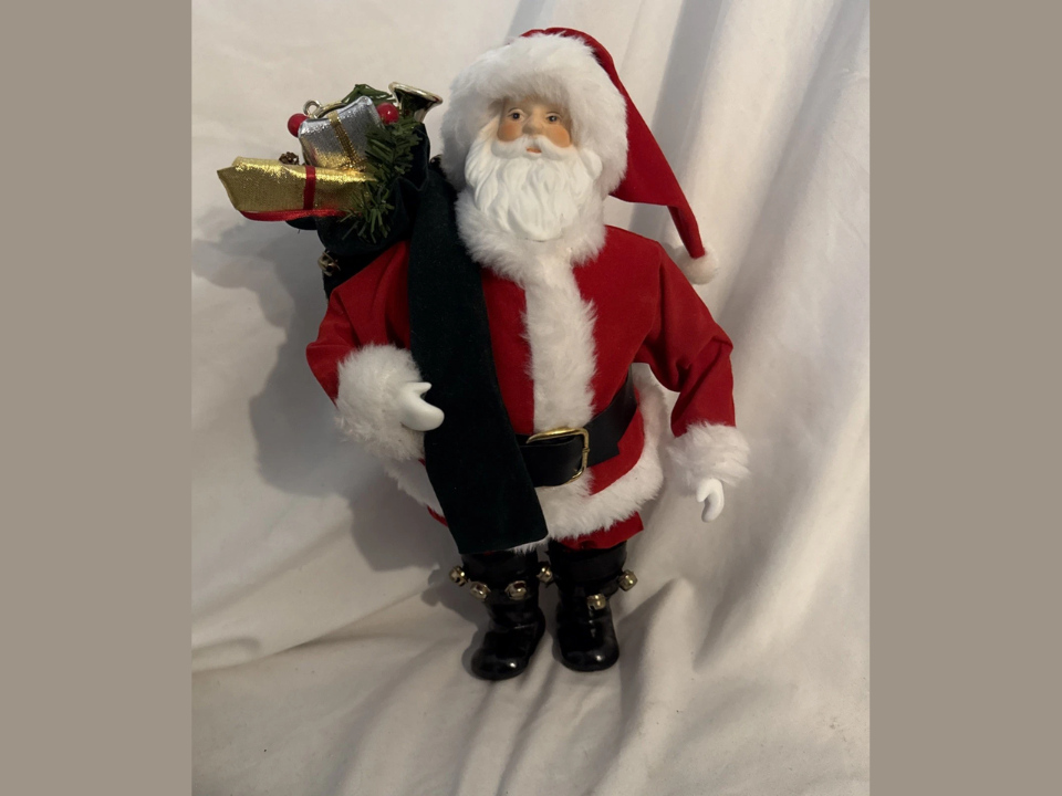 Santa’s face shows a warm smile and twinkling eyes that bring a sense of joy to any display. The piece is about ten inches tall which makes it a strong focal point under a tree or on a hearth. With children’s stockings hung nearby it brings a festive energy to the room. Estimated value is about $35.