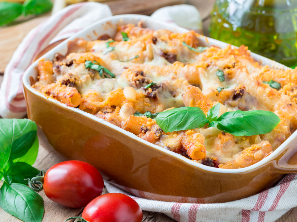 Baked ziti is ideal for large gatherings and freezer planning. One pound cooked ziti mixed with marinara and cheese creates a sturdy base. The pasta absorbs sauce without turning soft after freezing. Baking at 375°F for 30 to 35 minutes sets the cheese and warms the center. Letting the dish cool fully keeps condensation from forming inside the wrap.