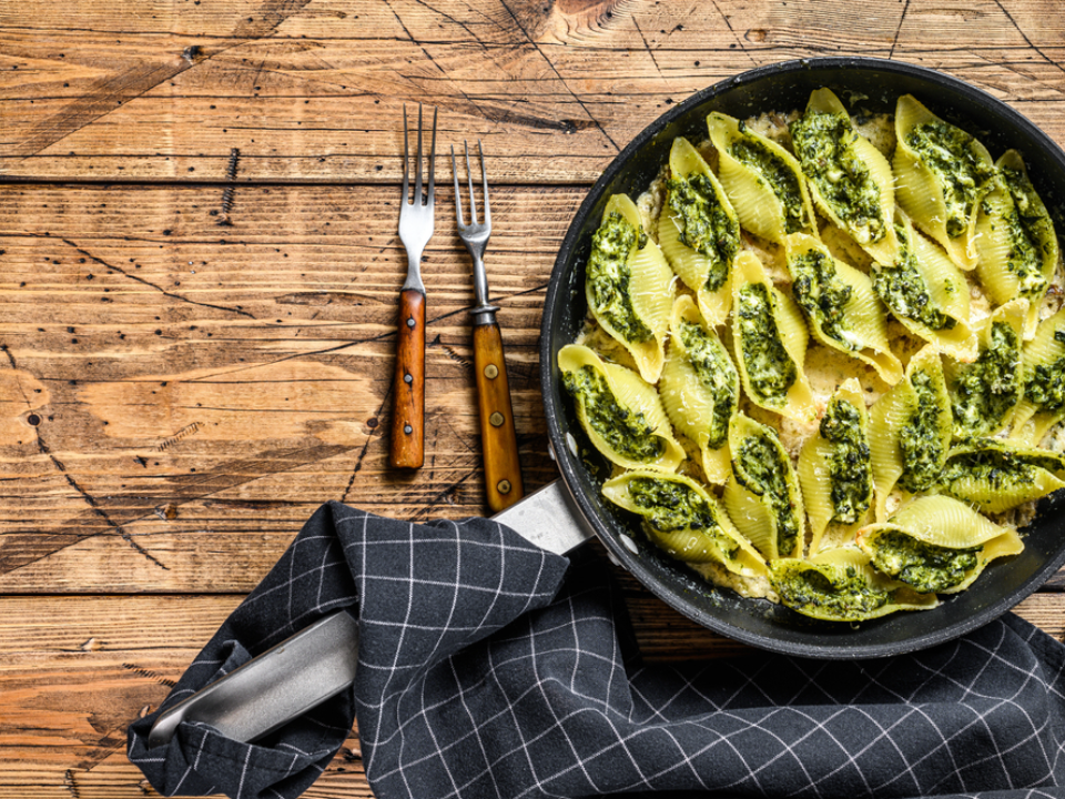 Freezing the shells in sauce helps lock in moisture. Tightly wrapping the dish keeps ice crystals from forming on the surface. Reheating from frozen at 350°F for about 60 minutes warms everything evenly. The shells remain tender rather than mushy. This dish works well as a vegetarian friendly holiday option.