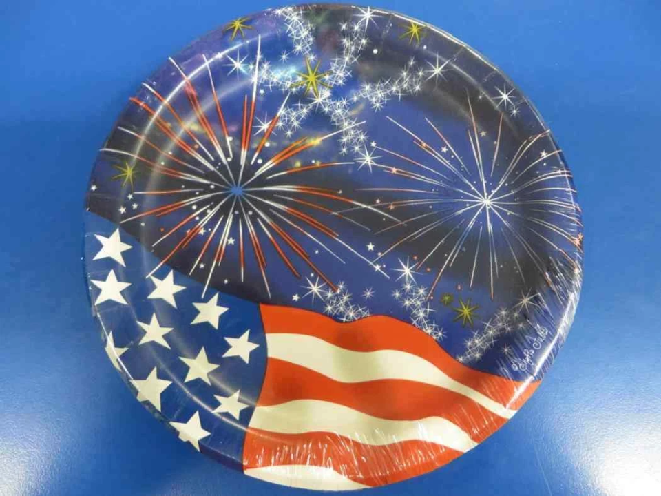 A petite plate showing red, white and blue fireworks or stars offers a festive touch for summer celebrations. It pairs well with ice cream, fruit pies or refreshments during outdoor gatherings. The patriotic palette tends to catch attention especially when paired with other themed napkins or tablecloths. A single plate usually sells at about $20 to $30.