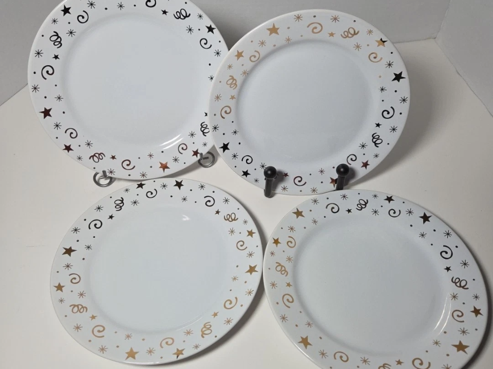 A single plate often sells for $20 to $30. A matching set of four may reach $55. Its metallic detailing tends to hold up well if handled gently and stored with care. For those who prefer minimal but festive settings this plate adds a hint of celebration to the table.