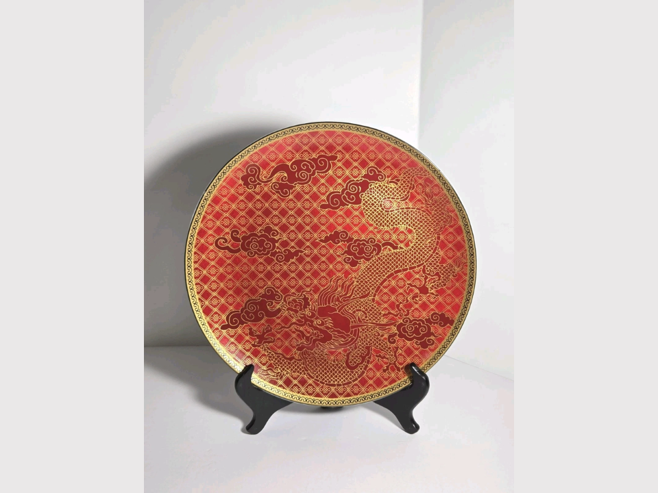 A vibrant red plate accented with gold motifs such as dragons, lanterns or cherry blossoms evokes traditional Lunar New Year celebrations. The red and gold tones stand out against neutral dinnerware adding festive warmth. Many buyers serve special dishes during the holiday using such plates to reflect cultural heritage.