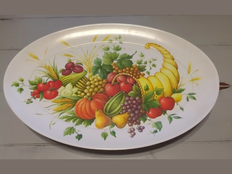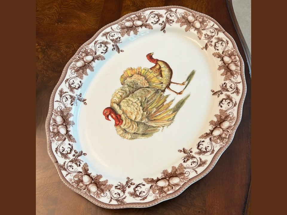 Many families use such a platter only once a year during holiday meals which helps preserve its finish. A well maintained example often sells for $45 to $65. Antique versions or those with heavier glaze may command $80 or more. When placed at the centre of the table it adds a seasonal atmosphere that reminds diners of harvest and shared meals.