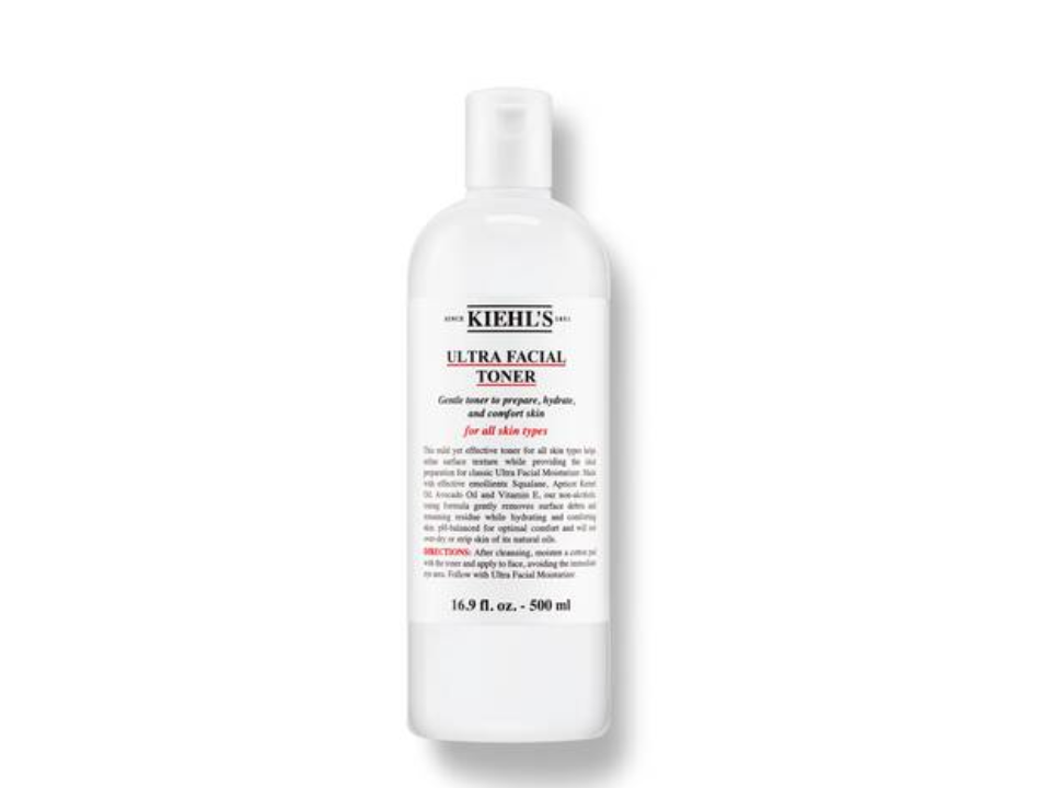 Kiehl’s Ultra Facial Toner serves as a slightly creamier hydrating step for dry or normal skin. It supports moisturizer by adding both water and light emollients, creating a soft cushion before heavier creams go on top. Key ingredients include squalane, apricot kernel oil, avocado oil, vitamin E, glycerin, and sodium hyaluronate. The texture is milky and gentle, without alcohol, and leaves the skin feeling soft rather than stripped.