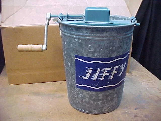 Made to last, the galvanized metal body ensures the Jiffy ice cream maker stands the test of time. The hand-crank operation may take a little effort, but it’s a rewarding experience for those who enjoy the process of making ice cream. The metal construction gives the piece a solid feel, while the compact size makes it easy to store. Its simple design adds charm to any collection of vintage kitchen appliances. The Jiffy brand has a loyal following due to its durability and reliability.