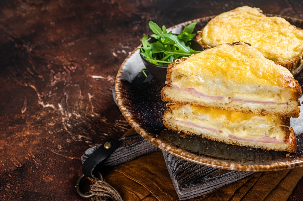 The Croque Monsieur is a classic French sandwich made with ham, Gruyere cheese, and bechamel sauce, grilled to perfection. It’s typically served as a snack or light meal and is often enjoyed with a side salad or some pickles. This dish originated in Paris in the early 20th century and remains a popular choice in French cafes. It can also be transformed into a Croque Madame by adding a fried egg on top.