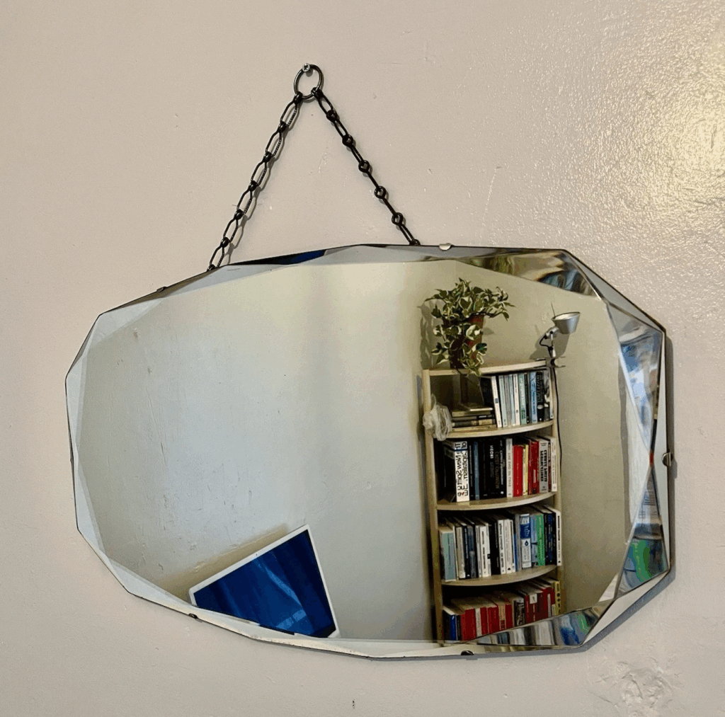 Milanese workshops produced sleek mirrors with stepped profiles and clean geometry. Thick plates with wide bevels reflect the spirit of the 1930s. Chrome accents or ebonized edges appear on some models. The style suits foyers and dressing rooms with equal ease. Current prices often sit between $1,800 and $4,200.