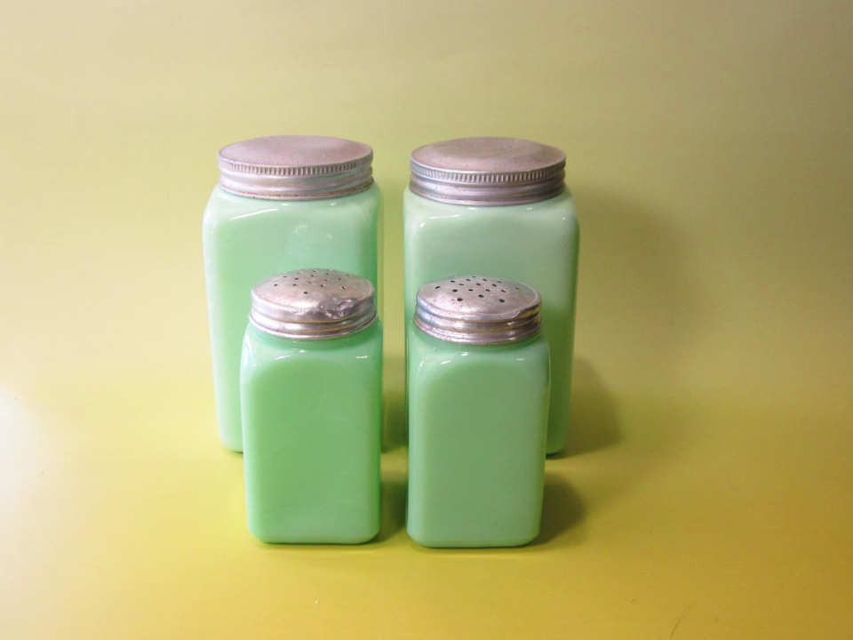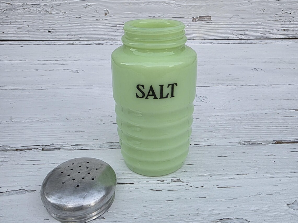 During the 1930s, Jeannette made Jadite shakers that still stand out today, and the beehive form is one of the easiest to spot. People keep collecting it because the ribbed shape adds texture without taking up much room. It is also a small way to bring early jadeite into a kitchen without buying a larger and pricier item. A single shaker often falls around $40 to $70, while a nice pair can run about $88 to $125 or more.