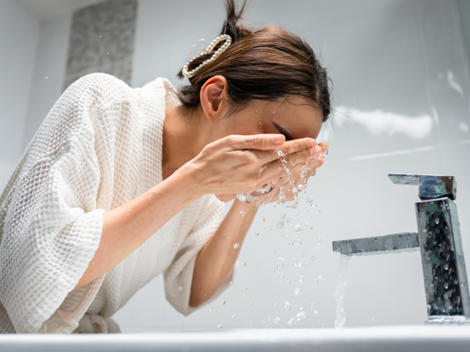 Washing Face with Hot Water