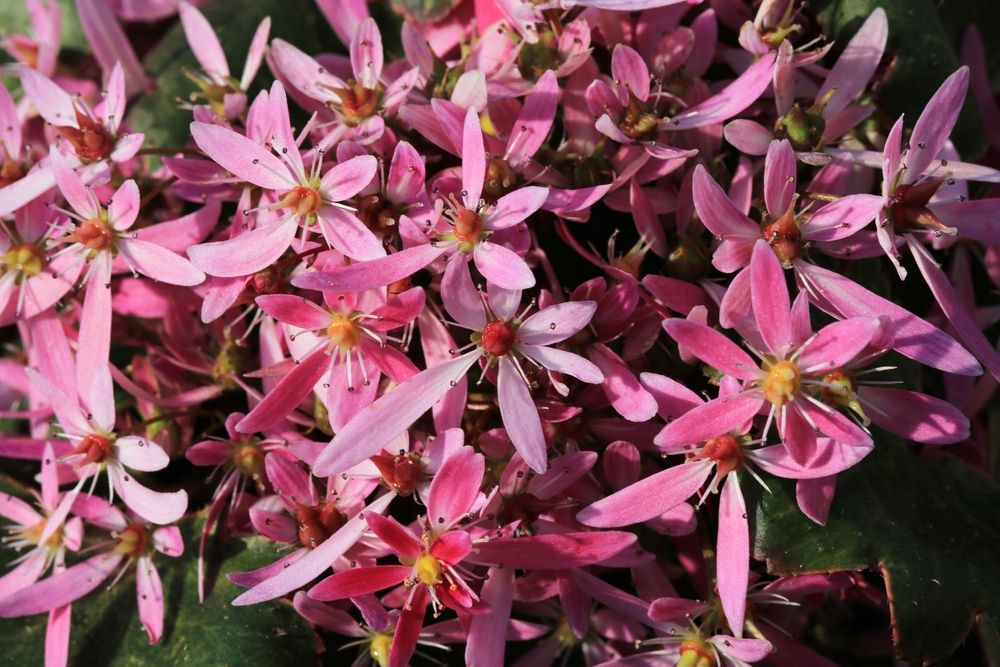 Saxifraga, or rockfoil, is a hardy flower that blooms late in the fall, often continuing into November. Its small flowers, typically white or pink, grow in dense clusters, offering a delicate and charming appearance. Saxifraga thrives in cooler temperatures and can tolerate light frosts, making it an excellent flower for fall gardens. It is perfect for adding color to rock gardens or as ground cover in shaded areas.
