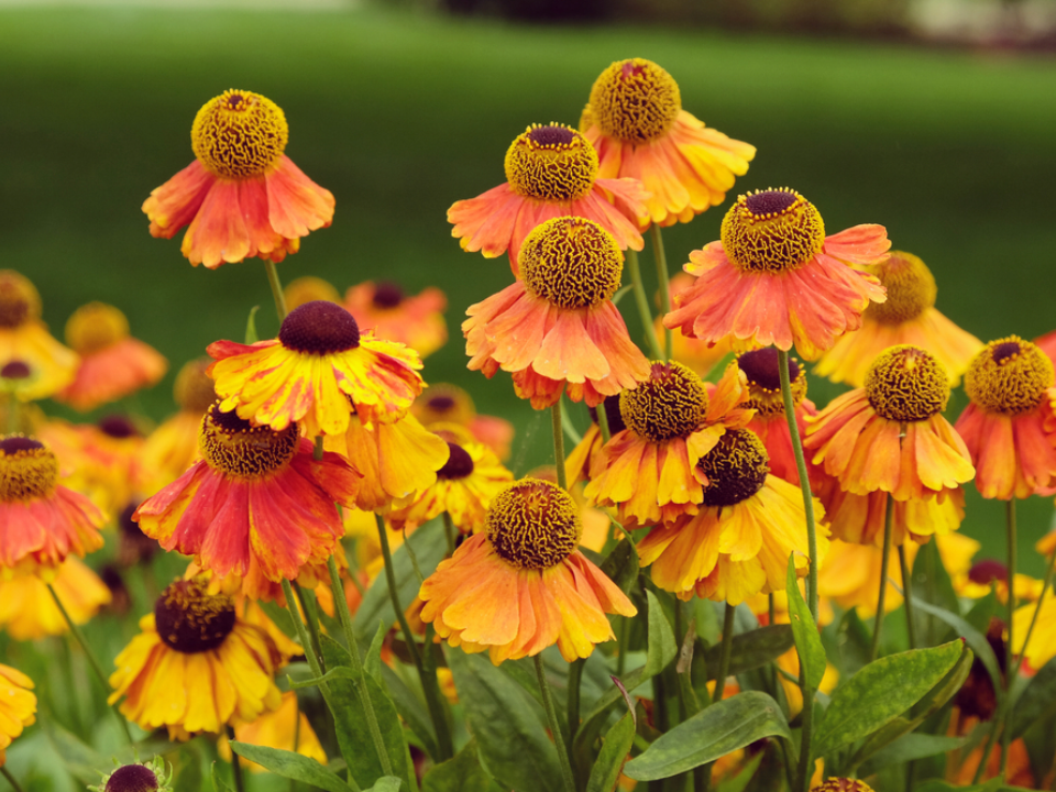 Helenium, or sneezeweed, is a brilliant late-season flower with its fiery red, orange, and yellow blooms. It starts to bloom in mid-summer and continues into the fall, making it a perfect addition to any garden looking for vibrant color as the season winds down.