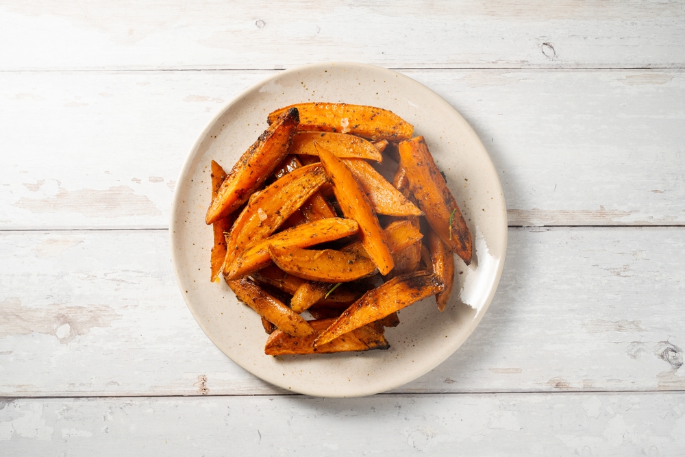 You will need 2 medium sweet potatoes, peeled and cut into fries, 1 tablespoon of olive oil, one-half teaspoon of paprika, and salt to taste. Preheat the oven to 400 degrees F (200 degrees C). Toss the sweet potato fries in olive oil and season with paprika and salt. Spread them in a single layer on a baking sheet and bake for 25-30 minutes, flipping halfway through. Once golden and crispy, serve them warm. These fries are perfect for enjoying a cozy snack without feeling too full.