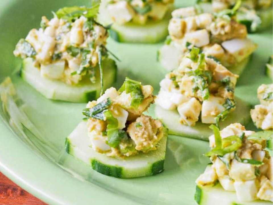 Egg salad on cucumber slices is a cozy yet light snack that’s perfect for late winter. The creamy egg salad pairs wonderfully with the crisp cucumber, making this snack feel filling without being heavy. It’s a refreshing and comforting option that works as a snack or a light lunch. You can easily customize the egg salad by adding mustard or herbs to taste. It’s a simple, satisfying snack that can be made quickly and enjoyed without feeling overly full.