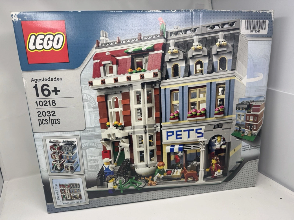 The LEGO 10218 Pet Shop is a set that contains rare small pieces like the unique windows and door frames. Builders who specialize in architecture or city builds seek this set because of its many intricate details. The set includes specific dark green and tan bricks that are not found in many other sets. The current market price for a complete model is about $900 or more.