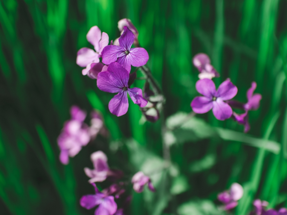 Aubrieta is a trailing spring bloomer that stays low and creates a colorful blanket over the soil or along stone edges. Its flowers usually come in purple, violet, pink, or blue shades and can cover much of the plant at bloom time. The foliage remains low and compact, which helps it work well in rock gardens and sunny borders.