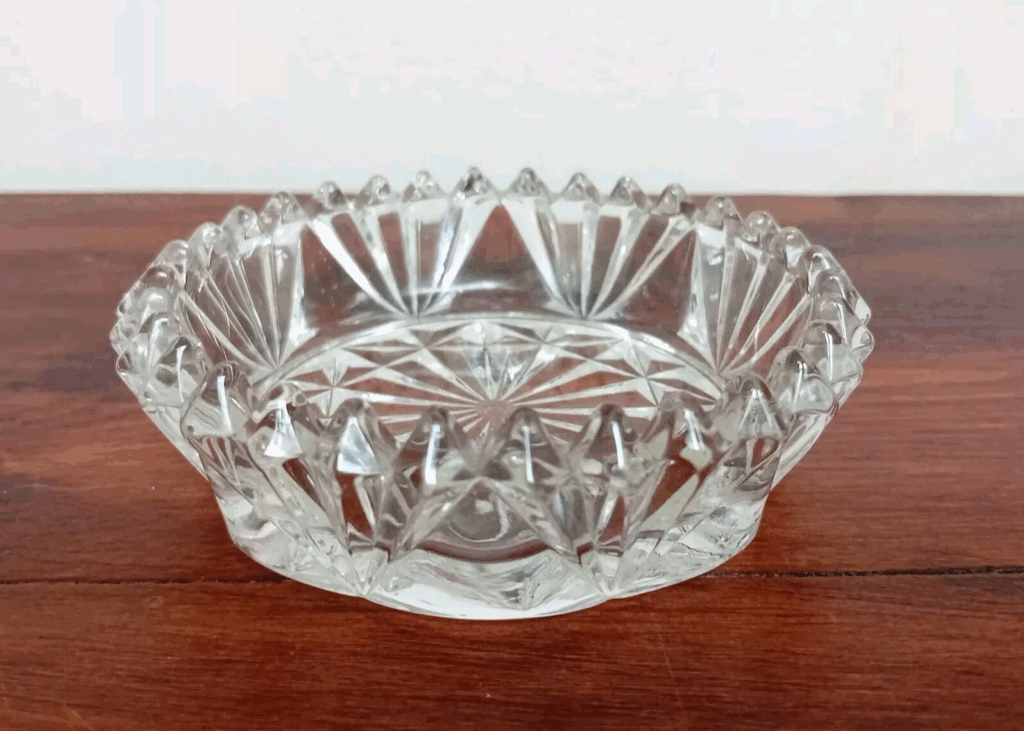 Cut-Crystal or Pressed Glass Ashtray from the 1950s