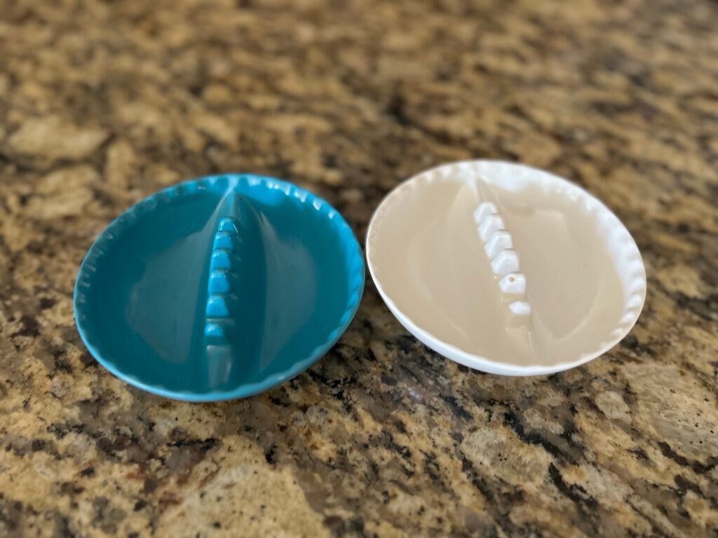 Prices for these are often low relative to glass or metal ashtrays – common listings range around $15 to $30 – making them approachable for someone new to collecting vintage mid-century pieces. Their cheerful colors and lightweight build make them easy to display or repurpose as small trays for keys or trinkets.
