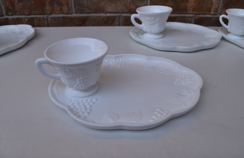 Colony Harvest Milk Glass Snack Plate and Cup Set