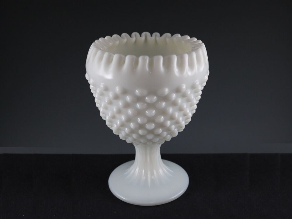 Fenton Hobnail Milk Glass Footed Ivy Ball Vase