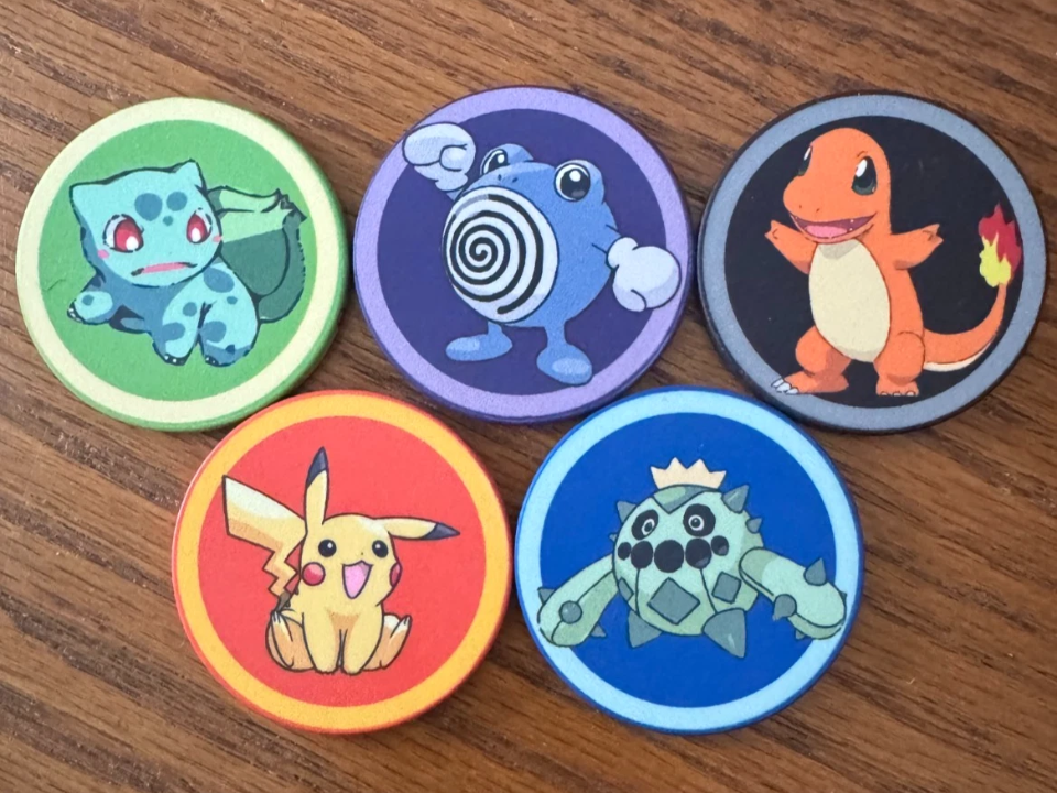 The KFC Pokémon poker chip set first appeared in 2001 in limited regions of Asia with select meals. Each chip features a different Pokémon and the set was printed in colors that matched character types. Collectors find this set desirable because it did not have a wide release outside certain countries. A complete set in great shape can fetch around $250 to $300. Many buyers also enjoy the feel of the poker chips because they are heavier than typical toys.