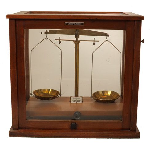 Its museum-worthiness comes from its role in lab science where precise measurement underpinned chemistry, pharmaceuticals and research around that time. It reflects the craftsmanship of instrument making and the standards of measurement before digital balances. The clear glass case and polished metal make it visually appealing and instructive. It links to themes of quantification, science education and industrial chemistry in the early 1900s. As a display item it brings laboratory history to life.
