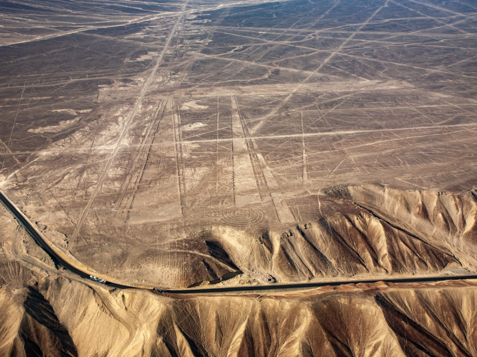 The Nazca Lines, located in the desert of southern Peru, are a series of massive geoglyphs etched into the ground. These lines, which form various shapes including animals, plants, and geometric patterns, are best seen from the air. The purpose of the lines remains a mystery, adding to their intrigue.