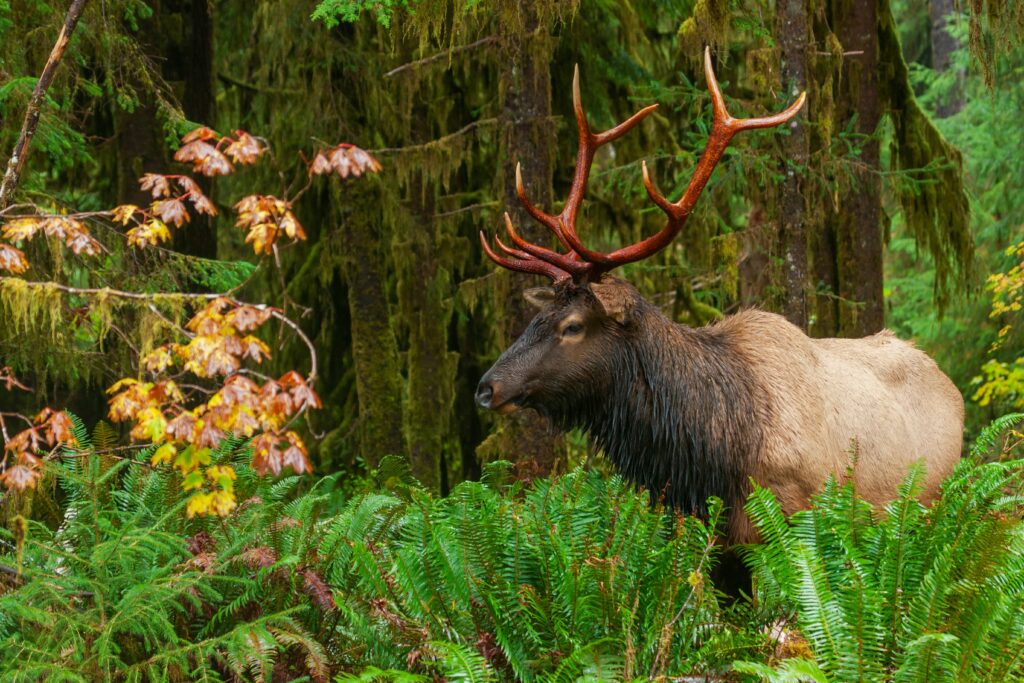 Olympic National Park in Washington protects one of the most diverse natural environments in the United States. Within its boundaries are temperate rainforests, rugged mountains, and a long stretch of wild coastline. These habitats support a wide variety of wildlife that depend on untouched wilderness. Roosevelt elk are among the most notable animals living in the park’s forests and valleys. Protection of these habitats allowed elk populations to remain stable over many decades.