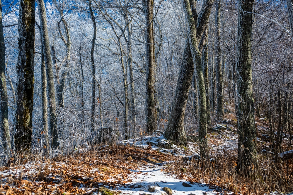 The Great Smoky Mountains show a softer side in December with bare trees revealing long lines of rolling ridges. Light snow sometimes settles across the peaks and valleys, giving the hills a quiet winter charm. The smoky wisps of fog that drift through the mountains become more visible against the leafless trees. Scenic roads stay open, offering far-reaching views across the snowy hills.
